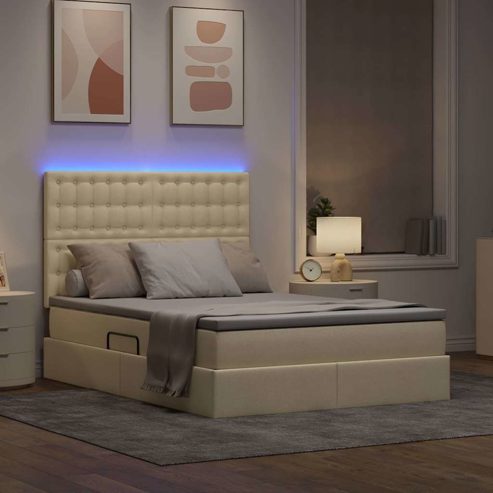 vidaXL Bett mit LED-Lichtleisten mit Kopfteil Creme 140 x 190 cm Stoff