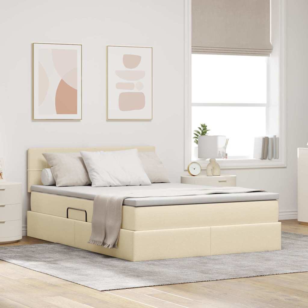 vidaXL Aufbewahrungsbett mit Matratze Creme 140 x 190 cm Holzwerkstoff