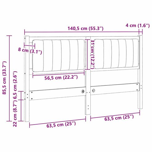 vidaXL Gepolstertes Kopfteil Braun 135 cm Massivholz Kiefer und Stoff