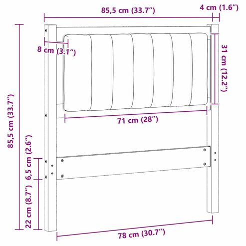 vidaXL Gepolstertes Kopfteil Braun 80 cm Massivholz Kiefer und Stoff
