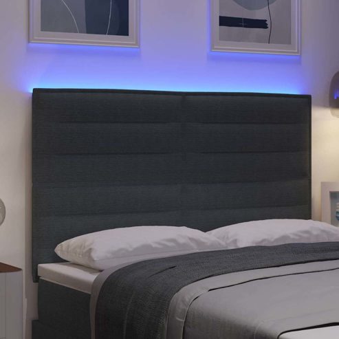 vidaXL LED Kopfteil mit LED -Streifenleuchten Dunkelgrau 160 cm Stoff