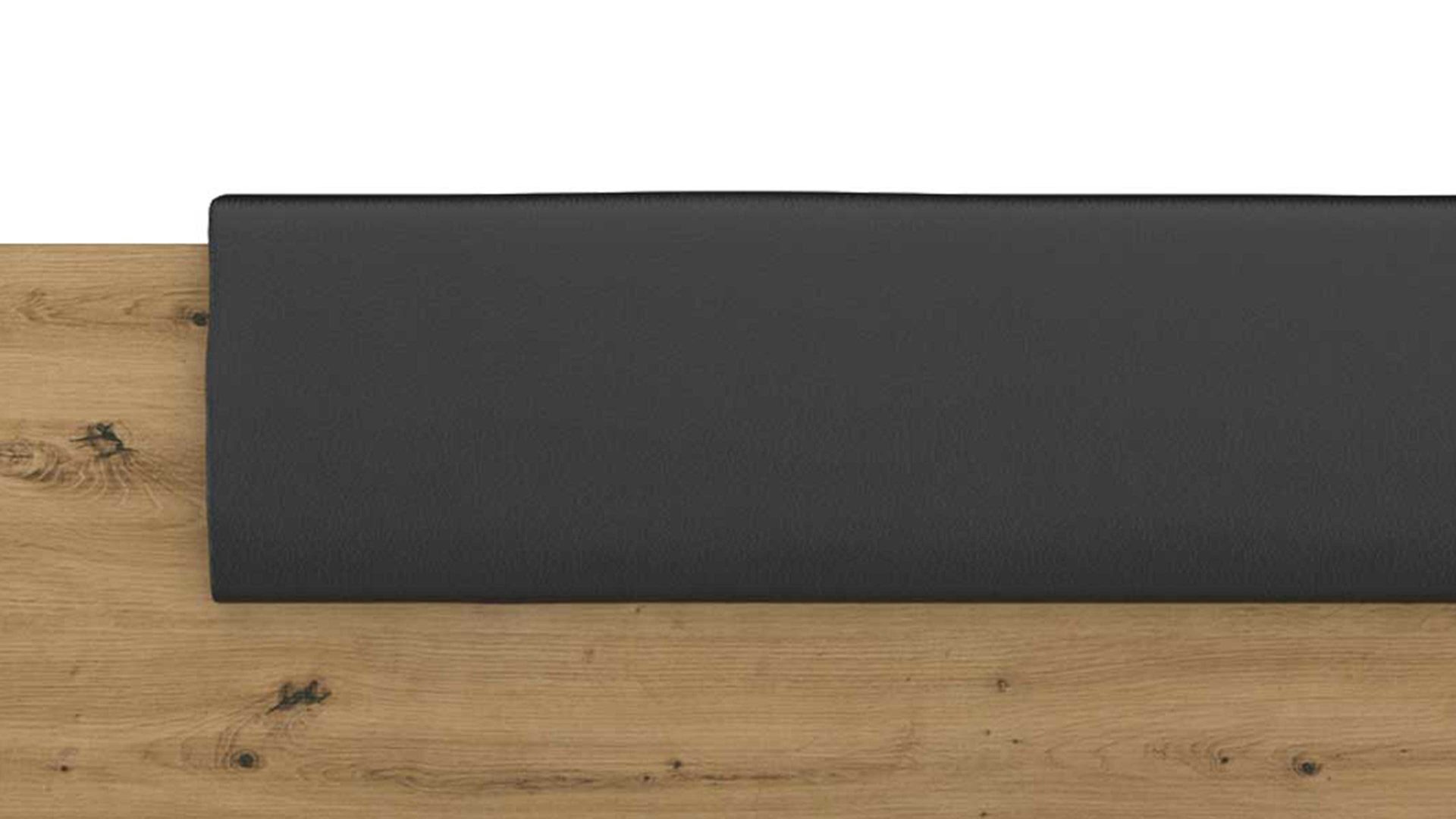 Entdecken Sie das rauch BLUE Miro Bettgestell - das perfekte Doppelbettgestell für einen erholsamen Schlaf und stilvolles Ambiente in Ihrem Schlafzimmer. Es besticht durch seine grau-metallicfarbenen Kunststoffoberflächen kombiniert mit Eiche Artisan Nachbildung und schwarzem Kopfteileinsatz in Lederoptik. Der schwarze Sockel verleiht dem Bettgestell eine moderne Note und sorgt