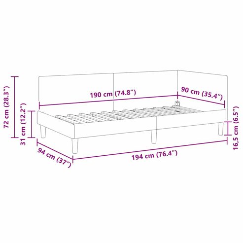 vidaXL Eckbettgestell Gelb 90 x 190 cm Samt und engineered Holz