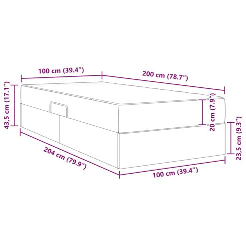 Dieses moderne Bett mit Stauraum und elegantem schwarzen Metallrahmen ist gemacht, um jedes Schlafzimmer aufzupeppen. Die glatte Textur und Kunstleder-Oberfläche geben dem Möbelstück einen schlichten Look, perfekt für alle, die Wert auf Design und Funktion legen. Das Bett integriert eine Matratze mit Stauraum und ist die ideale Lösung für Räume, die multifunktionale Möbel brauchen. Robuster Rahmen: Mit stabiler Metallkonstruktion bietet dieses Bett Stabilität und hält alles zusammen, während es auch noch gut aussieht. Die Holzwerkstoffteile bringen einen Hauch von Eleganz ein und machen es zur besten Wahl für moderne Räume. Integrierter Stauraum: Der kreative hydraulische Seitenlift-Mechanismus gibt Zugang zu viel Stauraum unter dem Bett, perfekt für Bettwäsche und Klamotten. Dieser Stauraum bleibt ordentlich und sieht gleichzeitig gut aus. Komfortable Matratze: Mit mittlerer Festigkeit bietet die Matratze einen angenehmen Schlaf, kombiniert Schaum und Taschenfederkern für herausragenden Komfort. Sie passt sich jeder Schlafposition an und sorgt für Entspannung nach einem langen Tag. Elegante Oberfläche: Die glatte Kunstledertextur schaut nicht nur schick aus, sondern ist auch strapazierfähig, damit sie lange gut aussieht. Sie bringt modernen Stil ohne Kompromisse. Einfache Pflege: Für die Pflege braucht das Bett nur ein trockenes Tuch für den perfekten Zustand. Das sorgt dafür, dass die Möbel in jedem Haushalt zeitlos bleiben - mit minimalem Aufwand. ** Farbe: Grau ** Material: Leder ** Rahmenmaterial: Metall ** Gesamtabmessungen: 204 x 100 x 43,5 cm (L x B x H) ** Matratzengröße: Breites Einzelbett (100 cm x 200 cm oder 39" x 79") ** Max. Gewicht: 140 kg ** Mit Lattenrost: Ja ** Maximale Personenzahl: 1 ** Stauraum ** Geräumiger Stauraum unter dem Bett ** Hydraulischer SeitLiftmechanismus ** mit Matratze ** Matratzenmaterial: Kunstleder ** Montage erforderlich: Ja ** Lieferumfang: ** 1 x Bett (100 x 204 cm) ** 1 x Matratze (100 x 200 x 20 cm)