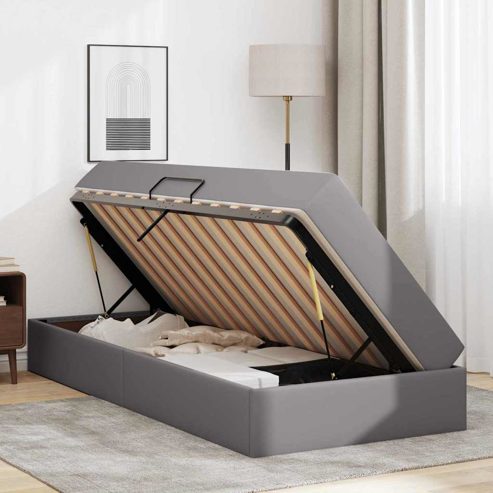 vidaXL Aufbewahrungsbett mit Matratze mit Matratze 2 pcs Grau Leder
