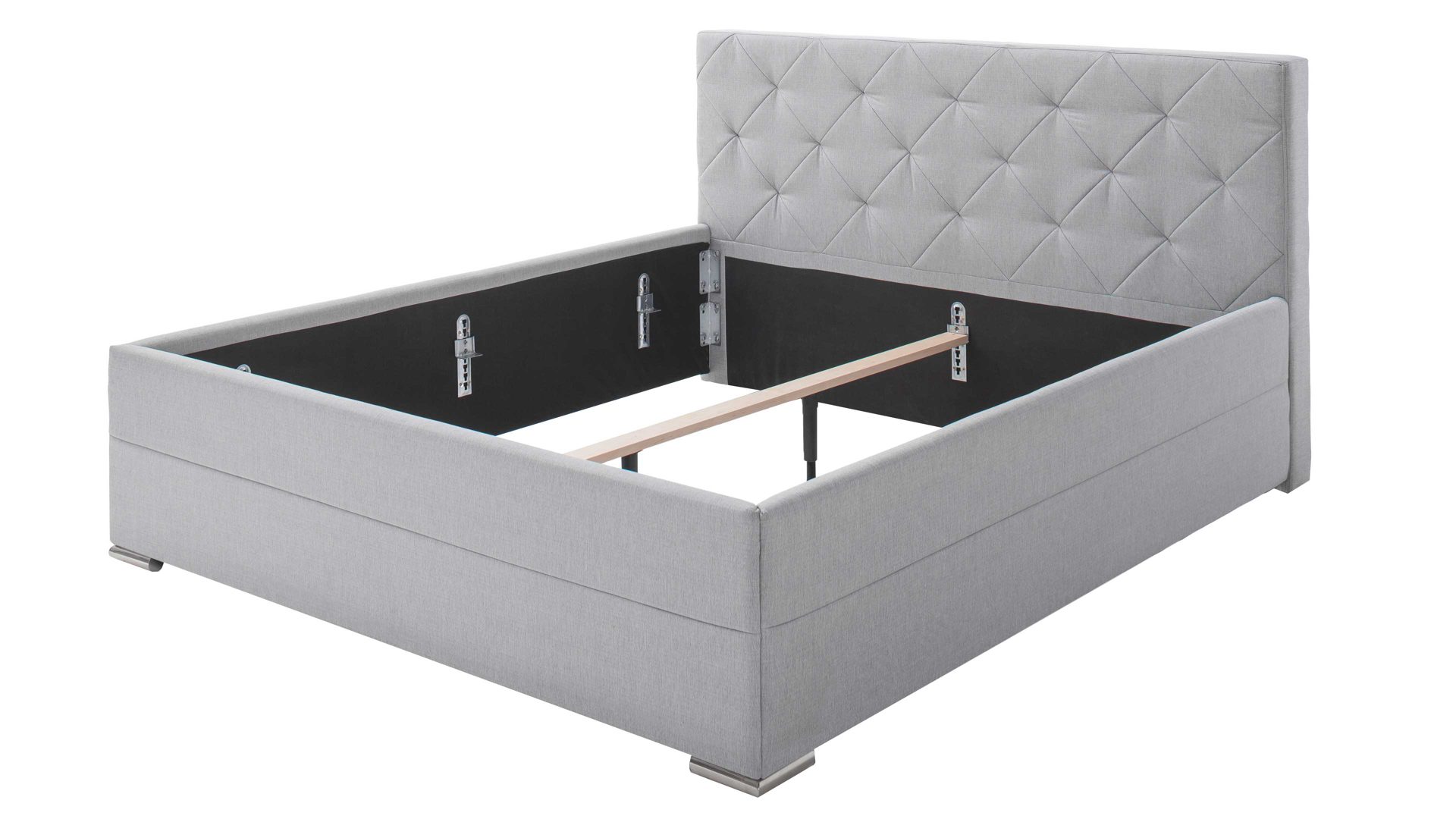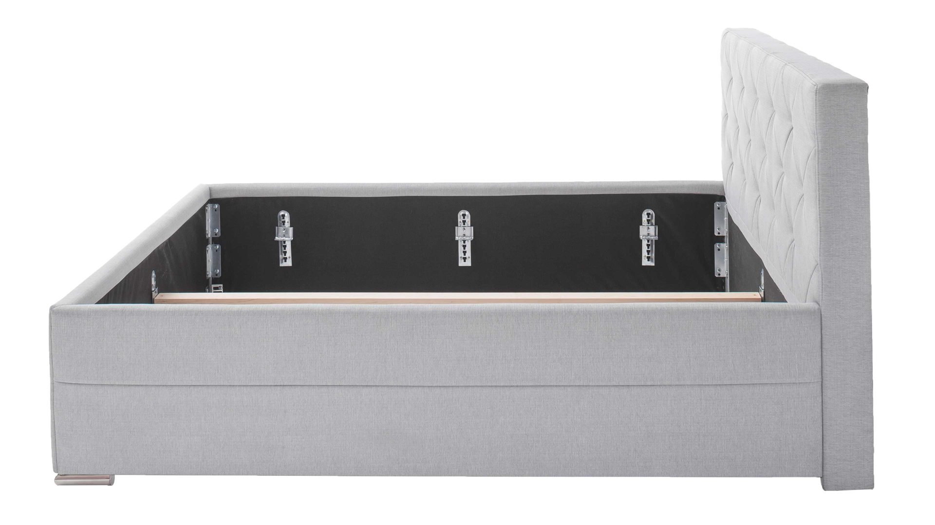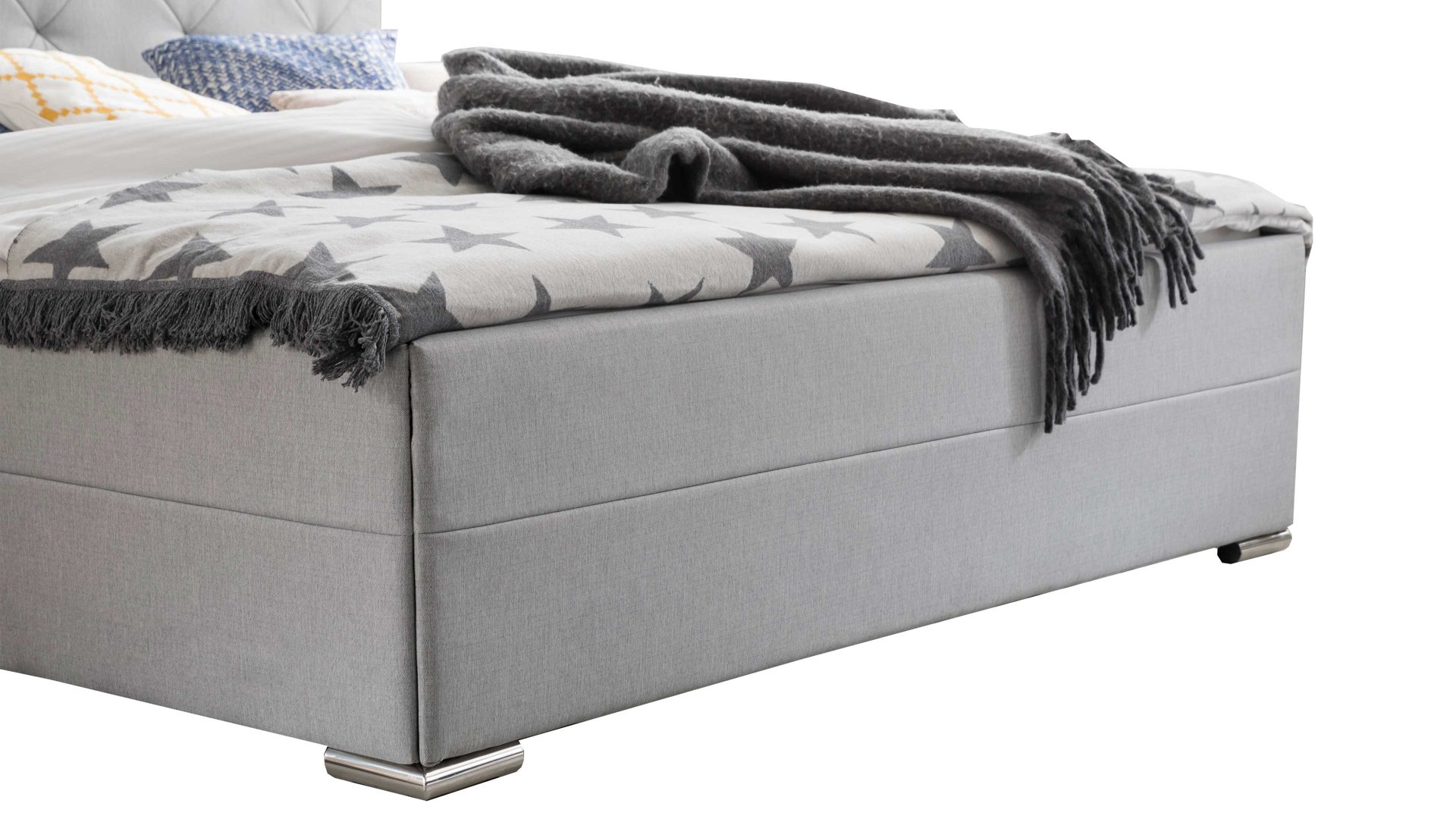 Das Polsterbettgestell Chicago verleiht Ihrem Schlafzimmer einen eleganten Charme. Sein hellgrauer Bezugsstoff Porto 31 bringt einen zeitlosen Stil mit. Perfekt darauf abgestimmt sind die edlen chromfarbenen Metallfüße. Dank dieser Gestaltung harmoniert das Bett mit verschiedensten Einrichtungsstilen.