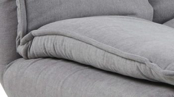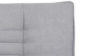Das Schlafsofa Faith beeindruckt mit seinem modernen, eleganten Design sowie der Funktionalität, die es zu einem vielseitigen Polstermöbel macht. Für die nötige Standstabilität sorgen mattschwarz pulverbeschichtete Metallfüße. Der hellgraue Stoffbezug wirkt besonders stilvoll und fühlt sich darüber hinaus sehr angenehm an. Einen gelungenen Akzent setzt die Quersteppung der Sitz- und Rückenfläche. Der Rücken der Couch ist mit schwarzem Nesselstoff bezogen.