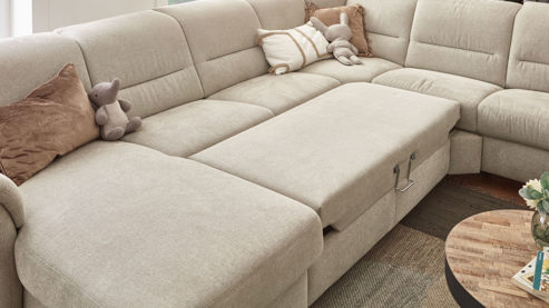 Dank der Kaltschaumpolsterung auf erstklassiger Wellenunterfederung sitzen Sie auf der Rundecke besonders bequem. Auch die Rückenlehnen sind mit Kaltschaum gepolstert, sodass Sie sich entspannt zurücklehnen können und wunderbar weich aufgefangen werden.