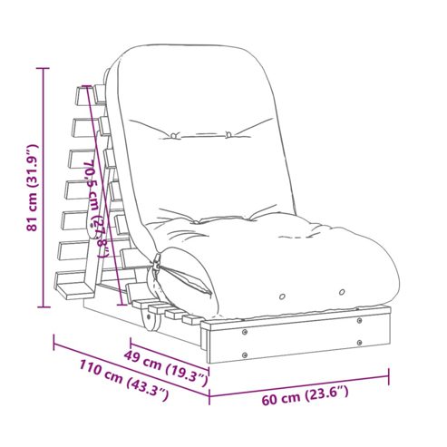 Dieses Futon-Schlafsofa aus Holz ist mit einer verstellbaren Rückenlehne versehen, um eine bequeme Sitz- bzw. Liegeposition zu bieten. Es eignet sich ideal für dein Wohn-, Schlaf- oder Gästezimmer. Langlebiges Material: Massives Kiefernholz ist für seine Stärke und Haltbarkeit bekannt. Seine gerade Maserung und die charakteristischen Aststellen tragen zu seinem rustikalen Charme bei.Komfortables Erlebnis: Der Rahmen des Futonsofas ist stabil und verfügt über einen Lattenrost, der die Belüftung gewährleistet. Außerdem sorgt die weiche Schaumstoffmatratze für ein bequemes Sitz- und Schlaferlebnis.Verstellbare Rückenlehne: Die Rückenlehne lässt sich je nach Bedarf verstellen, von Sitzposition bis hin zur Liegeposition.Einfache Lagerung: Das Futon-Sofabett kann nach dem Entfernen der Matratze zur Aufbewahrung zusammengeklappt werden und nimmt nicht zu viel Platz ein.Breiter Anwendungsbereich: Das Futon-Schlafsofa mit seinem schlichten und zeitlosen Design eignet sich gut für kleinere Räume. An sonnigen Tagen kann es auch draußen im Garten verwendet werden. ** Futon-Schlafsofa: ** Farbe: Wachsbraun ** Material: Massives Kiefernholz ** Abmessungen: 60 x 206/110/198 x 11/81/47 cm (B x T x H) ** Sitz-Größe: 60 x 49/128,5 cm (B x T) ** Rückenlehnen-Größe: 70,5/74 x 60 cm (L x B) ** Maximale Belastbarkeit: 110 kg ** Kann halb oder vollständig zusammengeklappt werden ** Zusammenbau erforderlich: Ja ** Matratze: ** Farbe: Grau ** Bezugsmaterial: Stoff (100% Polyester) ** Füllung: Schaumstoff ** Abmessungen: 60 x 200 x 8 cm (B x T x T) ** Lieferung umfasst: ** 1 x Futon-Schlafsofa ** 1 x Matratze Maximal 110 kg pro Sitzplatz.