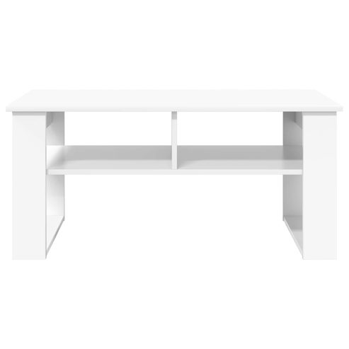 Dieser moderne Couchtisch bringt stilvolle Eleganz und praktische Funktionalität in zeitgenössische Wohnzimmer. Seine rechteckige Form und klaren Linien machen ihn super vielseitig und wertvoll für jede Einrichtung. Der Tisch bietet eine praktische Fläche für Drinks, Magazine und Deko und bringt gleichzeitig frischen modernen Chic in dein Zuhause. Robuste Bauweise und schlankes Design machen ihn ideal für alle, die Wert auf Funktionalität und Style legen. Als zentraler Punkt des Raums lädt er gesellig zu Gesprächen ein und schafft eine einladende Atmosphäre für Familie und Freunde. Materialien: Der Tisch ist aus Holzwerkstoff, der die perfekte Kombination aus Langlebigkeit und schicker Optik bietet. Das Material sorgt für eine stabile Basis, die im Alltag standhält. Seine glatte Oberfläche lässt ihn elegant aussehen, was ihn zu einer tollen Ergänzung für jedes Wohnzimmer macht. Enthaltene Komponenten: Der Couchtisch kommt mit praktischen Regalbrettern aus Holzwerkstoff, die eine einfache, aber effektive Lösung zur Aufbewahrung bieten. Hier kannst du alles unterbringen – ob Magazinen oder Fernbedienungen, damit der Tisch aufgeräumt bleibt. Eigenschaften / Funktion / Design: Das schlichte, moderne Design fügt sich problemlos in die aktuelle Wohnumgebung ein und wertet die Räumlichkeiten auf. Der minimalistische Stil sorgt dafür, dass der Platz effizient genutzt wird – ideal für Stadtwohnungen oder kleine Räume, wo jeder Quadratmeter zählt. Empfohlene Anwendungen: Dieser Tisch ist perfekt für Wohnzimmer und eignet sich hervorragend für gesellige Treffen und entspannte Runden. Seine proportionierten Maße ermöglichen eine vielseitige Nutzung – ob als Ablagefläche für Kaffee oder als Showpiece für schöne Deko, er vereint Funktionalität mit Stil. Pflege & Wartung: Um sein glänzendes Aussehen zu bewahren, vermeide scharfe Chemikalien beim Reinigen. Ein einfaches Abwischen mit einem trockenen Tuch genügt. Stelle sicher, dass du ihn gemäß den Anleitungen zusammenbaust – du brauchst dafür nur einen Schraubendreher. ** Farbe: Weiß ** Material: Holzwerkstoff ** Rahmenmaterial: Holzwerkstoff ** Gesamtabmessungen: 96 x 54 x 44 cm (L x B x H) ** Langlebig ** Montage erforderlich: Ja ** Lieferumfang: ** 1 x couchtisch
