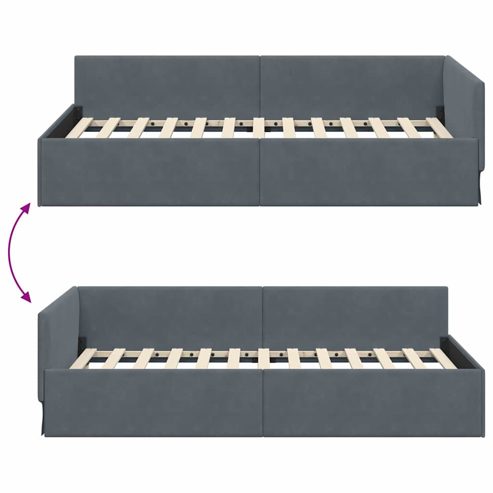 vidaXL Eckbettgestell Dunkelgrau 90 x 200 cm Samt und engineered Holz