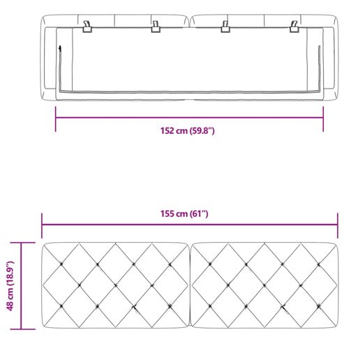 Dieses Kopfteil-Kissen mit stilvollem Design verleiht deinem Bett Komfort und Eleganz und fügt sich in jedes Schlafzimmer ein. Weicher Samt: Samt ist ein weicher und bequemer Stoff, der sich angenehm auf der Haut anfühlt. Ausgezeichnete Unterstützung: Das Kopfteil-Kissen ist mit Schaumstoff gefüllt und fühlt sich daher extra weich und komfortabel an. Es bietet eine ausgezeichnete Rückenunterstützung beim Sitzen im Bett oder Fernsehen. Praktisches Design: Das Kopfteil mit Kissen hat einen Reißverschluss für eine einfache Montage. Die Klettverschlüsse auf der Rückseite können zur Befestigung von LED-Leisten verwendet werden. Vielseitige Montage: Das Kopfteil-Polster kann mit den mitgelieferten Gurten an die Wand gehängt werden, sodass es zu jeder Bettart passt. Du kannst es auch mit einem Bett mit gebogenen Kopfteil (in unserem Shop erhältlich) verwenden. Nimm einfach den Stoffbezug vom alten Kopfteil ab und lege dieses Kissen darauf und dann hast du schon ein bequemes Kopfteil! Klassische Schönheit: Die Rauten-Heftung unterstreicht die klassische Schönheit des gepolsterten Kopfteils. Gut zu wissen:Die Lieferung beinhaltet nur ein Kopfpolster. Bettgestell und Matratze sind nicht im Lieferumfang enthalten. ** Farbe: Dunkelgrau ** Material: Samt (100% Polyester) ** Füllung: Schaumstoff ** Abmessungen: 155 x 6 x 48 cm (L x B x H) ** Geeignete Matratzenbreite: 152 cm ** Produktreihe: Piran ** Zusammenbau erforderlich: Ja