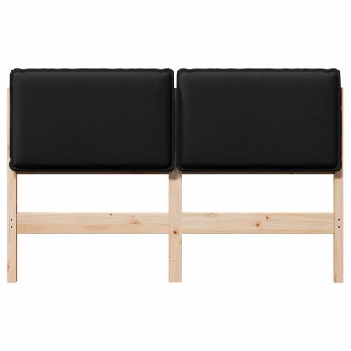 Dieses gepolsterte Kopfteil aus massivem Holz ist die perfekte Ergänzung für dein modernes Schlafzimmer. Die elegante Form und das schlanke Design bringen einen Hauch von Raffinesse in deinen Raum. Hergestellt aus stabilem Kiefernholz kombiniert das Kopfteil Ästhetik mit Funktionalität und passt zu verschiedenen Schlafzimmerstilen. Die luxuriöse Polsterung sorgt für zusätzlichen Komfort und macht es zu einem Blickfang in deiner Einrichtung. Massivholzkonstruktion Dieses Kopfteil aus robustem Kiefernholz sorgt für Langlebigkeit und hält auch über die Jahre stand. Die natürliche Holzmaserung bringt einen erdigen Touch, der gut zu verschiedenen Dekoren passt. Gepolstertes Design Die elegante Polsterung bietet eine angenehme, weiche Oberfläche für zusätzlichen Komfort. So wird es sowohl funktional als auch stilvoll. Moderne Schlichtheit Der moderne Stil wird durch schlichte Linien und wenig Schnickschnack geprägt. Es fügt sich gut in verschiedene Zimmerstile ein und ist vielseitig nutzbar. Praktische Pflege Um das Kopfteil sauber zu halten, genügt ein einfacher Wisch mit einem feuchten Tuch. So bleibt es schön und langlebig. Nur für den Innenbereich Dieses Kopfteil ist ideal für den Innenbereich und schafft eine gemütliche, einladende Atmosphäre. Es ist so gestaltet, dass es den täglichen Herausforderungen standhält und trotzdem gut aussieht. ** Farbe: Natürlich und Schwarz ** Material: Massives Kiefernholz ** Rahmenmaterial: Massivholz Kiefer ** Gesamtabmessungen: 140 x 12 x 84,5 cm (L x B x H) ** Langlebig ** Einfach zu reinigen ** Lieferumfang: ** 1 x Kopfteil