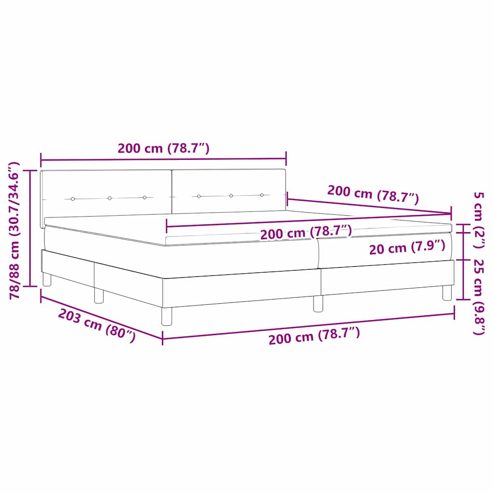 Dieses Boxspringbett bringt Funktionalität und einen coolen Look zusammen. Es bietet dir einen gemütlichen Platz zum Entspannen und echten Stil in jedem Schlafzimmer. Mit klaren Linien und einem minimalistischen Design ist es perfekt für Leute, die Einfachheit und einen Touch Raffinesse suchen. Der stabile Rahmen und die gepolsterte Oberfläche aus Holzwerkstoff und Polyester sorgen für Langlebigkeit und Gemütlichkeit. Egal, ob im Hauptschlafzimmer oder im Gästezimmer – dieses Bett fügt sich überall perfekt ein und zeigt, wie vielseitig es in Design und Nutzung ist. Modernes Design: Das frische Aussehen des Bettes dreht sich um Einfachheit mit klaren Linien und einem eleganten Finish. Es ist funktional und ideal für einen minimalistischen Stil, was jeder Einrichtung einen schicken Akzent verleiht. Dieses Bett verbindet Praktikabilität mit Eleganz, perfekt für alle, die einen subtilen Charme schätzen. Verstellbares Kopfteil: Das höhenverstellbare Kopfteil lässt sich einfach an deinen Komfort anpassen. Du kannst es beim Entspannen oder Schlafen einstellen, um dein Schlaferlebnis zu verbessern. Diese Flexibilität sorgt dafür, dass es zu jeder Matratzenhöhe passt und gut aussieht. Taschenfedern: Die Matratze hat einzeln gewickelte Taschenfedern für mehr Komfort und weniger Bewegungsstörungen. Dieses clevere Design sorgt für eine stabile und bequeme Schlafumgebung und minimiert die Bewegung von Partnern – besonders praktisch in gemeinsamen Schlafräumen. Atmungsaktiver Stoff: Der atmungsaktive Polyester-Stoff verbessert die Luftzirkulation und sorgt für zusätzlichen Komfort. Dieses Material fühlt sich nicht nur toll an, sondern hält deinen Schlafbereich auch frisch und sauber. Die Qualität des Stoffes sorgt dafür, dass er lange weich bleibt und gut aussieht. Praktische Montage: Der Aufbau ist ein Kinderspiel mit gängigen Werkzeugen. Zwei Personen können es einfach zusammenbauen, wenn sie den klaren Anweisungen folgen und erhalten so ein stabiles und ruhiges Gestell. Dieser praktische Montageprozess zeigt seine Funktionalität und trägt zu seiner Langlebigkeit bei. ** Farbe: Creme ** Material: Stoff ** Rahmenmaterial: Holzwerkstoff ** Gesamtabmessungen: 203 x 200 x 88 cm (L x B x H) ** Matratzengröße: Kaiserbett (200 cm x 200 cm oder 79" x 79") ** Hat ein lattenrahmen: Ja ** Maximale anzahl von menschen: 2 ** Modern ** Langlebig ** Muster ** Höhenverstellbares Kopfteil ** mit Matratze ** Matratzenmaterial: Polyester ** Versammlung erforderlich: Ja ** Lieferung: ** 1 x Bettgestell, 1 x Kopfteil, 1 x Matratze, 1 x Matratzentopper, 2 x LED-Streifen Dieses Produkt wird mit 5 V Gleichstrom betrieben, aber die zertifizierte 5-V-USB-Stromquelle ist nicht im Lieferumfang enthalten. Eine höhere Spannung kann zu einer Überhitzung führen und das Gerät beschädigen sowie das Risiko von Überhitzung und Brand verursachen.