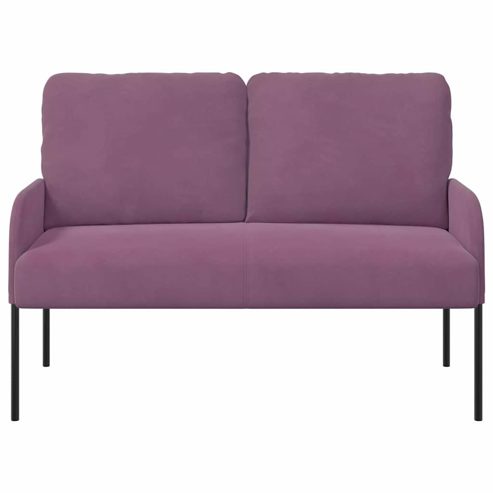Dieses Sofa verwandelt dein Zuhause in ein modernes Refugium, das Eleganz und funktionales Design vereint. Es bietet viel Platz und ist perfekt zum Entspannen oder für gesellige Runden. Mit seinen klaren Linien passt es bestens zu zeitgemäßer Einrichtung und ist eine vielseitige Ergänzung für jeden Wohnstil. Stell dir vor, wie du nach einem langen Tag in die bequemen Kissen versinkst, umgeben von weichem Polyesterstoff. Elegant und unaufdringlich lädt dieses Sofa Freunde und Familie ein und macht jeden Moment zusammen noch komfortabler. Polyesterbezug: Das Sofa ist in weichem Polyester, der sich gut anfühlt, eingekleidet. Der Stoff ist angenehm und leicht zu reinigen, einfach abwischen, und schon sieht es wieder gut aus. Auch in lebhaften Haushalten bleibt es attraktiv dank der Abriebfestigkeit des Materials. Robuste Metallbeine: Unterstützt von starken Metallbeinen in elegantem Schwarz, bringt das Sofa einen modernen Touch in dein Zuhause. Diese Beine sorgen für stabilen Halt und ein unerschütterliches Gefühl beim Sitzen oder Entspannen. Die hochwertige Konstruktion sorgt dafür, dass du lange Freude daran hast. Runde Kissen: Die runden Kissen sind nicht nur super bequem, sie verleihen dem Sofa auch einen schickeren Look. Das abgerundete Design hält die Kissen formstabil, egal ob du mit einem Buch entspannst oder Gäste hast. Polyester-Rückenlehne und Armlehnen: Rücken- und Armlehnen des Sofas sind mit Polyester bezogen, was extra Komfort bietet. Dank des ergonomischen Designs sinkst du entspannt in die Rücklehne und Armlehnen, was Belastung bei längeren Sitzungen verringert. Einfache Pflege: Mit minimalem Aufwand bleibt dieses Sofa langlebig. Vermeide nur scharfe Chemikalien beim Reinigen, damit es frisch und lebhaft bleibt. Ein weiches Tuch genügt, sodass es ideal in deinen geschäftigen Alltag passt. ** Farbe: Lila ** Material: Sperrholz ** Armlehnenmaterial: Polyester ** Beinmaterial: Metall ** Gesamtabmessungen: 115 x 56 x 80 cm (L x B x H) ** Sitzbreite: 110 cm ** Sitztiefe: 40 cm ** Sitzhöhe vom Boden: 40 cm ** Armlehnenhöhe vom Sitz aus: 25 cm ** Modern ** Max. Gewicht: 110 kg pro Sitz ** Montage erforderlich: Ja