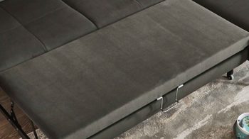 Die stilvolle Eckgarnitur aus der Modulmaster-Serie MM-ZE1156 kombiniert einen olivgrünen Stoffbezug in Samtoptik mit mattschwarzen Metallfüßen. Sie präsentiert sich modern-elegant designt.