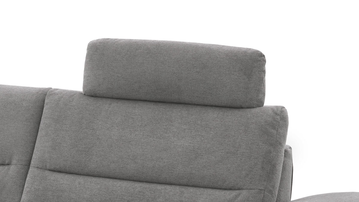 die Kopfstütze wird in die Kopfstützenvorrichtung an der Rückenlehne des Sofas eingesteckt und lässt sich dann in der Höhe und in der Neigung manuell verstellen