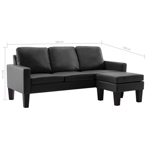 vidaXL 3-Sitzer-Sofa mit Hocker Schwarz Kunstleder