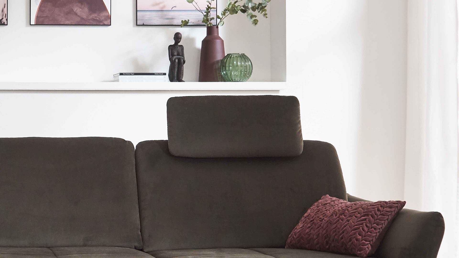 • Die Abbildung zeigt ein Wohnbeispiel, welches auch Dekoration sowie separat erhältliches Zubehör enthält. Im Lieferumfang enthalten ist der Mehrpreis für eine stoffbezogene Liegefläche.