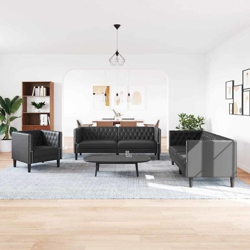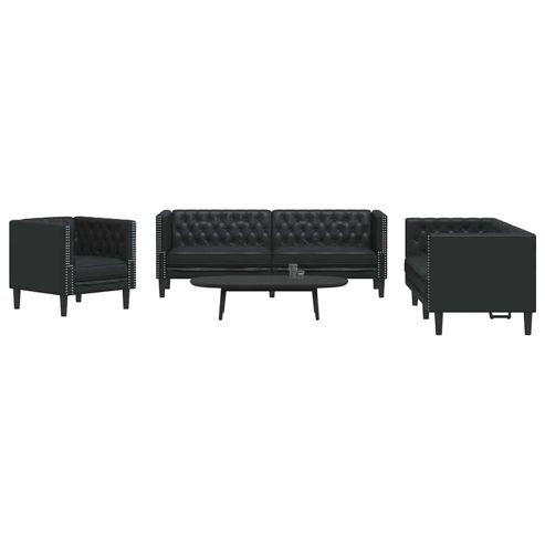 vidaXL Sofa Set 3 pcs Schwarz 194 x 74.5 x 70.5 cm Kunstleder