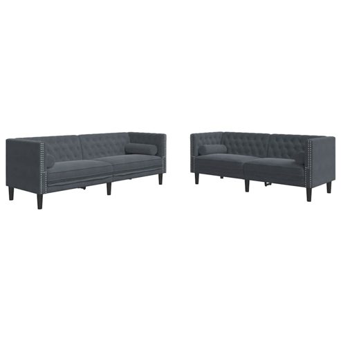 Die traditionelle Samtcouch ist eine schicke Sitzgelegenheit, die perfekt für entspannte Nachmittage, abendliche Zusammenkünfte oder einfach für dein Wohnzimmer ist. Mit ihrem weichen Samt und dem zeitlosen Design punktet diese Couch in Sachen Aussehen und Komfort. Sie ist nicht nur hübsch, sondern auch bequem und wird der Mittelpunkt für alle, die sich entspannen und Zeit miteinander verbringen wollen. Üppige Samtoberfläche: Diese Couch ist aus hochwertigem Samt gefertigt und bietet eine schöne, weiche Oberfläche, die sowohl stylish als auch bequem ist. Das atmungsaktive Material sorgt für Gemütlichkeit und sieht mit seinem matten Finish einfach gut aus. Mit ihrem luxuriösen Glanz sticht diese Couch in jedem Wohnzimmer hervor. Elegantes traditionelles Design: Sie hat flache Armlehnen und ein klassisches Aussehen, das zu vielen Wohnstilen passt. Ihr schicker Stil bringt einen Hauch von Eleganz und Tradition ins Spiel und macht deinen Wohnbereich warm und einladend. Schicker, abgeschlossener Rücken: Die Rückenlehne sieht aus jeder Perspektive gut aus und ist perfekt für offene Layouts. Damit kannst du sie überall stellen und sie behält ihr schickes Aussehen. Robuste Kegelformbeine: Mit stabilen, konischen Beinen aus festem Kunststoff bietet diese Couch zuverlässigen Halt und bleibt stabil. Der schlanke Look betont ihre Eleganz und sorgt dafür, dass sie lange in deiner Wohnung bleibt. Einfache Pflegeanleitung: Die Pflege ist ein Kinderspiel - einfach ab und zu die Polster absaugen und scharfe Chemikalien meiden. Diese Tipps helfen, die Couch über Jahre frisch und gemütlich aussehen zu lassen. ** Farbe: Dunkelgrau ** Material: Samt ** Armlehnenmaterial: Samt ** Beinmaterial: Kunststoff ** Gesamtabmessungen: 194 x 74.5 x 70.5 cm (L x B x H) ** Sitzbreite: 178 cm ** Sitztiefe: 59 cm ** Armlehnenhöhe vom sitz: 30 cm ** Langlebig ** Klassisch/Traditionell ** Sitzplatz: 5 ** Versammlung erforderlich: Ja ** Lieferung: ** 1 x 2-Sitzer Sofa, 1 x 3-Sitzer Sofa
