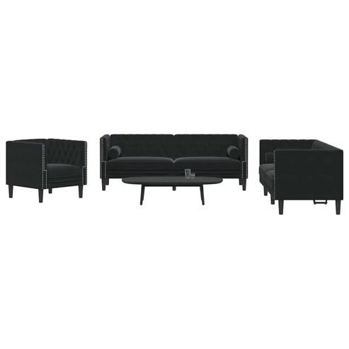 Die traditionelle Samtcouch ist eine schicke Sitzgelegenheit, die perfekt für entspannte Nachmittage, abendliche Zusammenkünfte oder einfach für dein Wohnzimmer ist. Mit ihrem weichen Samt und dem zeitlosen Design punktet diese Couch in Sachen Aussehen und Komfort. Sie ist nicht nur hübsch, sondern auch bequem und wird der Mittelpunkt für alle, die sich entspannen und Zeit miteinander verbringen wollen. Üppige Samtoberfläche: Diese Couch ist aus hochwertigem Samt gefertigt und bietet eine schöne, weiche Oberfläche, die sowohl stylish als auch bequem ist. Das atmungsaktive Material sorgt für Gemütlichkeit und sieht mit seinem matten Finish einfach gut aus. Mit ihrem luxuriösen Glanz sticht diese Couch in jedem Wohnzimmer hervor. Elegantes traditionelles Design: Sie hat flache Armlehnen und ein klassisches Aussehen, das zu vielen Wohnstilen passt. Ihr schicker Stil bringt einen Hauch von Eleganz und Tradition ins Spiel und macht deinen Wohnbereich warm und einladend. Schicker, abgeschlossener Rücken: Die Rückenlehne sieht aus jeder Perspektive gut aus und ist perfekt für offene Layouts. Damit kannst du sie überall stellen und sie behält ihr schickes Aussehen. Robuste Kegelformbeine: Mit stabilen, konischen Beinen aus festem Kunststoff bietet diese Couch zuverlässigen Halt und bleibt stabil. Der schlanke Look betont ihre Eleganz und sorgt dafür, dass sie lange in deiner Wohnung bleibt. Einfache Pflegeanleitung: Die Pflege ist ein Kinderspiel - einfach ab und zu die Polster absaugen und scharfe Chemikalien meiden. Diese Tipps helfen, die Couch über Jahre frisch und gemütlich aussehen zu lassen. ** Farbe: Schwarz ** Material: Samt ** Armlehnenmaterial: Samt ** Beinmaterial: Kunststoff ** Gesamtabmessungen: 194 x 74.5 x 70.5 cm (L x B x H) ** Sitzbreite: 178 cm ** Sitztiefe: 59 cm ** Armlehnenhöhe vom sitz: 30 cm ** Langlebig ** Klassisch/Traditionell ** Sitzplatz: 6 ** Versammlung erforderlich: Ja ** Lieferung: ** 1 x 2-Sitzer Sofa, 1 x 3-Sitzer Sofa