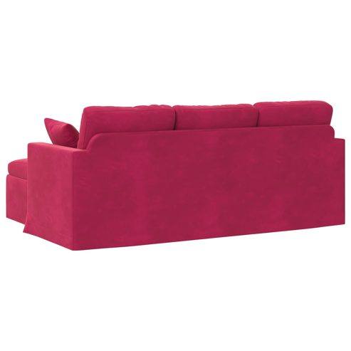Dieses moderne Sofa bringt frischen Wind in dein Zuhause. Mit seinem schicken Design und den praktischen ergonomischen Eigenschaften gibt es jedem Raum einen Hauch von Eleganz. Es kombiniert nützliche Funktionen mit einem stilvollen Look, der sich vielseitig einsetzen lässt. Dank der glatten Oberfläche kannst du nach einem stressigen Tag herrlich entspannen; es wird zum perfekten Mittelpunkt für ruhige Momente oder gesellige Runden. Hochwertige Materialien: Das Sofa hat einen stabilen Metallrahmen, der für Langlebigkeit sorgt, und die elegante Samtoberfläche sieht nicht nur toll aus, sondern ist auch atmungsaktiv und praktisch. Inklusive Komponenten: Es hat armlehnen aus Holzwerkstoff, die guten Halt bieten, plus Kissen mit Schaumfüllung für zusätzlichen Komfort. Die Kombination mit den glatten Kunststofffüßen sorgt für ein traditionelles und modernes Flair. Robuste Konstruktion: Der Rahmen ist stabil und solide, was Sicherheit bei der Nutzung bietet. Jedes Teil ist sorgfältig ausgewählt, um dir die richtige Haltung und den besten Komfort zu garantieren. Empfohlene Verwendungen: Das Sofa ist perfekt für Wohnzimmer oder Schlafzimmer, da es sowohl Flexibilität als auch Stil bietet. Egal ob du entspannst oder Gäste bewirtest, es kommt immer gut an. Pflege & Wartung: Die Pflege ist einfach: Wisch es mit einem trockenen Tuch ab, um sein schönes Aussehen zu erhalten. Regelmäßige Pflege sorgt dafür, dass dieses tolle Stück lange schön bleibt. ** Farbe: Weinrot ** Beinfarbe: Schwarz ** Upholstery material: Samt ** Füllmaterial: Schaum, Faser ** Armlehnenmaterial: Holzwerkstoff ** Beinmaterial: Kunststoff ** Gesamtabmessungen: 198 x 134 x 80 cm (B x T x H) ** Sitzbreite: 180 cm ** Sitztiefe: 52 cm ** Armlehnenhöhe vom Sitz aus: 16 cm ** Max. Gewicht: 110 kg/Sitz ** Langlebig ** Ergonomisches Design ** Robuste Bauweise ** Stabiles und robustes Gestell ** Bequemer Sitzpolster ** Nur für den Innenbereich ** Montage erforderlich: Ja ** Lieferumfang: ** 1 x Sofa
