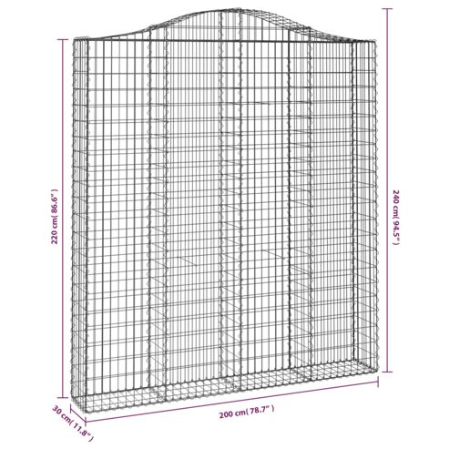 vidaXL Gabionen mit Hochbogen 3 Stk. 200x30x220 240cm Verzinktes Eisen