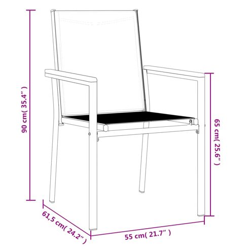 vidaXL Gartenstühle 2 Stk. Schwarz 55x61,5x90 cm Textilene und Stahl