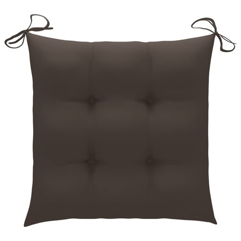 Dieses Gartenstuhl-Set aus Holz zeichnet sich durch ein zeitloses Design aus. Dank ihres schlichten und zugleich stilvollen Designs passen die Gartenstühle zu jeder Einrichtung, sei es Wohnungen, Büros, Bars oder Cafés. Das für dieses Möbelset verwendete Teakholz ist technisch getrocknet und anschließend fein geschliffen worden, um ein sehr glattes Erscheinungsbild zu eralten. Teakholz ist für seine außergewöhnliche Festigkeit und Witterungsbeständigkeit geschätzt und eignet sich daher besser für Gartenmöbel als jede andere Holzart. Teakholz ist die perfekte Wahl, wenn Sie ein langlebiges Gartenmöbel erwerben möchten. Dank der geschliffenen Oberfläche sind die Essstühle witterungsbeständig und leicht zu reinigen. Sie können auch zusammengeklappt werden, um bei Nichtgebrauch Stauraum zu sparen. Darüber hinaus sorgen die mitgelieferten Kissen für zusätzlichen Komfort. Jedes Kissen ist mit je 2 Bändern an zwei Ecken zur festen Befestigung am Stuhl versehen. Hinweis: Um die Lebensdauer Ihrer Gartenmöbel zu verlängern, empfehlen wir Ihnen, diese regelmäßig zu reinigen und bei Nichtgebrauch im Freien abzudecken.Reinigung: Verwenden Sie eine milde SeifenlösungLagerung: Wenn möglich, an einem kühlen, trockenen Ort im Innenbereich lagern. Wenn das Produkt im Freien gelagert wird, schützen Sie es mit einer wasserdichten Abdeckung. Wischen und trocknen Sie das überschüssige Wasser oder den Schnee nach Regen oder Schneefall von der ebenen Fläche. Sorgen Sie für eine ausreichende Luftzirkulation, um feuchtigkeitsbedingte Schäden zu vermeiden. ** Kissenfarbe: Taupe ** Stuhl-Material: Fein geschliffenes Teakholz mit Lasur auf Wasserbasis ** Kissen-Material: Stoff (100% Polyester) ** Stuhlmaße (aufgeklappt): 56 x 58 x 88 cm (B x T x H) ** Stuhlmaße (zusammengeklappt): 56 x 113 x 12 cm (B x T x H) ** Kissenmaße: 40 x 40 x 7 cm (L x B x T) ** Sitzbreite: 46,5 cm ** Sitztiefe: 41,5 cm ** Sitzhöhe vom Boden: 46 cm ** Zusammenklappbar ** Mit 2 Bänder-Sets ** Keine Montage nötig ** Lieferung enthält: ** 6 x Gartenstuhl ** 6 x Kissen Maximal 110 kg pro Sitzplatz.