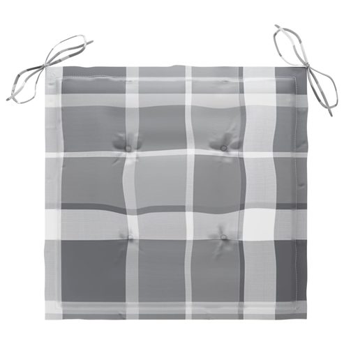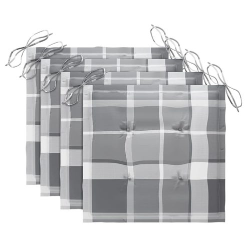 Dieses Gartenstuhl-Set aus Holz zeichnet sich durch ein zeitloses Design aus. Dank ihres schlichten und zugleich stilvollen Designs passen die Gartenstühle zu jeder Einrichtung, sei es Wohnungen, Büros, Bars oder Cafés. Das für dieses Möbelset verwendete Teakholz ist technisch getrocknet und anschließend fein geschliffen worden, um ein sehr glattes Erscheinungsbild zu eralten. Teakholz ist für seine außergewöhnliche Festigkeit und Witterungsbeständigkeit geschätzt und eignet sich daher besser für Gartenmöbel als jede andere Holzart. Teakholz ist die perfekte Wahl, wenn Sie ein langlebiges Gartenmöbel erwerben möchten. Dank der geschliffenen Oberfläche sind die Essstühle witterungsbeständig und leicht zu reinigen. Sie können auch zusammengeklappt werden, um bei Nichtgebrauch Stauraum zu sparen. Darüber hinaus sorgen die mitgelieferten Kissen für zusätzlichen Komfort. Jedes Kissen ist mit je 2 Bändern an zwei Ecken zur festen Befestigung am Stuhl versehen. Hinweis: Um die Lebensdauer Ihrer Gartenmöbel zu verlängern, empfehlen wir Ihnen, diese regelmäßig zu reinigen und bei Nichtgebrauch im Freien abzudecken.Reinigung: Verwenden Sie eine milde SeifenlösungLagerung: Wenn möglich, an einem kühlen, trockenen Ort im Innenbereich lagern. Wenn das Produkt im Freien gelagert wird, schützen Sie es mit einer wasserdichten Abdeckung. Wischen und trocknen Sie das überschüssige Wasser oder den Schnee nach Regen oder Schneefall von der ebenen Fläche. Sorgen Sie für eine ausreichende Luftzirkulation, um feuchtigkeitsbedingte Schäden zu vermeiden. ** Stuhl-Material: Fein geschliffenes Teakholz mit Lasur auf Wasserbasis ** Kissen-Material: Stoff (100% Polyester) ** Stuhlmaße (aufgeklappt): 56 x 58 x 88 cm (B x T x H) ** Stuhlmaße (zusammengeklappt): 56 x 113 x 12 cm (B x T x H) ** Kissen-Maße: 40 x 40 x 3 cm (L x B x T) ** Sitzbreite: 46,5 cm ** Sitztiefe: 41,5 cm ** Sitzhöhe vom Boden: 46 cm ** Zusammenklappbar ** Mit grauem Karomuster ** Mit 2 Bänder-Sets ** Keine Montage nötig ** Lieferung enthält: ** 4 x Gartenstuhl ** 4 x Sitzkissen Maximal 110 kg pro Sitzplatz.