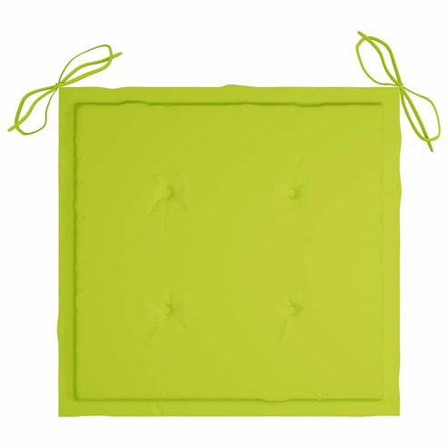 Dieses Gartenstuhl-Set aus Holz zeichnet sich durch ein zeitloses Design aus. Dank ihres schlichten und zugleich stilvollen Designs passen die Gartenstühle zu jeder Einrichtung, sei es Wohnungen, Büros, Bars oder Cafés. Das für dieses Möbelset verwendete Teakholz ist technisch getrocknet und anschließend fein geschliffen worden, um ein sehr glattes Erscheinungsbild zu eralten. Teakholz ist für seine außergewöhnliche Festigkeit und Witterungsbeständigkeit geschätzt und eignet sich daher besser für Gartenmöbel als jede andere Holzart. Teakholz ist die perfekte Wahl, wenn Sie ein langlebiges Gartenmöbel erwerben möchten. Dank der geschliffenen Oberfläche sind die Essstühle witterungsbeständig und leicht zu reinigen. Sie können auch zusammengeklappt werden, um bei Nichtgebrauch Stauraum zu sparen. Darüber hinaus sorgen die mitgelieferten Kissen für zusätzlichen Komfort. Jedes Kissen ist mit je 2 Bändern an zwei Ecken zur festen Befestigung am Stuhl versehen. Hinweis: Um die Lebensdauer Ihrer Gartenmöbel zu verlängern, empfehlen wir Ihnen, diese regelmäßig zu reinigen und bei Nichtgebrauch im Freien abzudecken.Reinigung: Verwenden Sie eine milde SeifenlösungLagerung: Wenn möglich, an einem kühlen, trockenen Ort im Innenbereich lagern. Wenn das Produkt im Freien gelagert wird, schützen Sie es mit einer wasserdichten Abdeckung. Wischen und trocknen Sie das überschüssige Wasser oder den Schnee nach Regen oder Schneefall von der ebenen Fläche. Sorgen Sie für eine ausreichende Luftzirkulation, um feuchtigkeitsbedingte Schäden zu vermeiden. ** Kissenfarbe: Hellgrün ** Stuhl-Material: Fein geschliffenes Teakholz mit Lasur auf Wasserbasis ** Kissen-Material: Stoff (100% Polyester) ** Stuhlmaße (aufgeklappt): 56 x 58 x 88 cm (B x T x H) ** Stuhlmaße (zusammengeklappt): 56 x 113 x 12 cm (B x T x H) ** Kissen-Maße: 40 x 40 x 3 cm (L x B x T) ** Sitzbreite: 46,5 cm ** Sitztiefe: 41,5 cm ** Sitzhöhe vom Boden: 46 cm ** Zusammenklappbar ** Mit 2 Bänder-Sets ** Keine Montage nötig ** Lieferung enthält: ** 6 x Gartenstuhl ** 6 x Kissen Maximal 110 kg pro Sitzplatz.