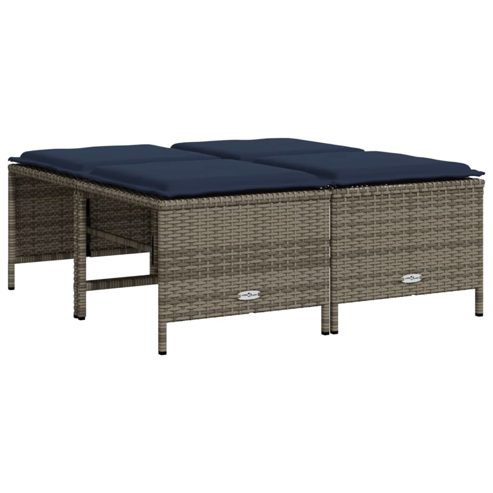 vidaXL Gartenhocker mit Kissen 4 Stk. Grau Poly Rattan