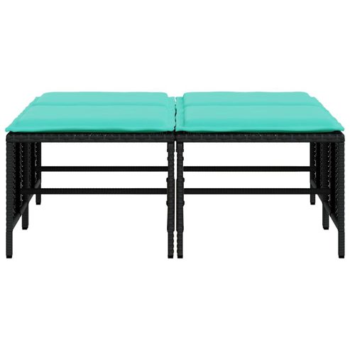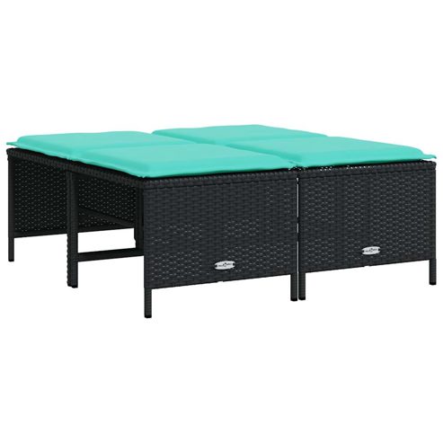 vidaXL Gartenhocker mit Kissen 4 Stk. Schwarz Poly Rattan