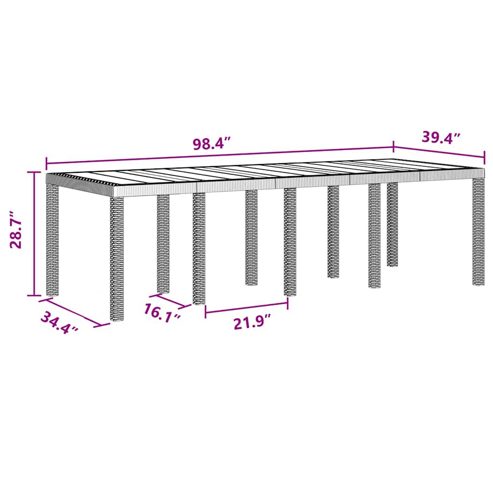 vidaXL Gartentisch Anthrazit 250 x 100 x 73 cm Poly-Rattan