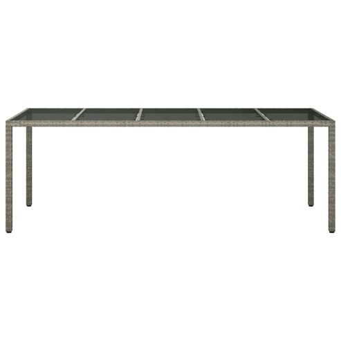 Verpass deinem Außenbereich einen neuen Look mit diesem Gartentisch, der perfekt für Gartenpartys und Essen auf der Terrasse ist. Sein modernes rechteckiges Design und der klare Stil passen richtig gut zu verschiedenen Außen-Dekoren und bieten eine schicke und praktische Grundlage für das Essen im Freien. Er ist einfach und funktional, ideal für alle, die nach einer eleganten Essenslösung im Freien suchen. Robuste Bauweise: Hergestellt aus strapazierfähigem Poly-Rattan, stabilem Stahl und Sicherheitsglas. Diese hochwertigen Materialien sind wetterfest und machen diesen Tisch zu einer zuverlässigen Ergänzung für jedes Jahr. Elegantes Aussehen: Die große rechteckige Tischplatte bietet genug Platz für Mahlzeiten mit Familie und Freunden. Seine glatte Oberfläche sorgt für einen modernen Touch. Wetterfeste Eigenschaften: Dank seiner wasser- und UV-beständigen Natur hält der Tisch sowohl Regen als auch Sonne stand und bleibt schön. Funktionale Bauweise: Hat einen starken, pulverbeschichteten Stahlrahmen für extra Haltbarkeit. Die stabilen Beine sorgen für Standfestigkeit und unterstützen den modernen Stil. Einfache Pflege: Super einfach zu pflegen, einfach mit einem feuchten Tuch abwischen und aggressive Reiniger vermeiden. Eine Abdeckung ist am besten, wenn er nicht in Gebrauch ist. ** Farbe: Grau ** Material: Poly rattan ** Beenden: Pulverbeschichtet ** Gesamtabmessungen: 250 x 100 x 75 cm (L x B x H) ** Langlebig ** Wasserfeste Materialien ** Versammlung erforderlich: Ja ** Lieferung: ** 1 x Gartentisch