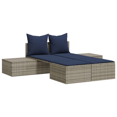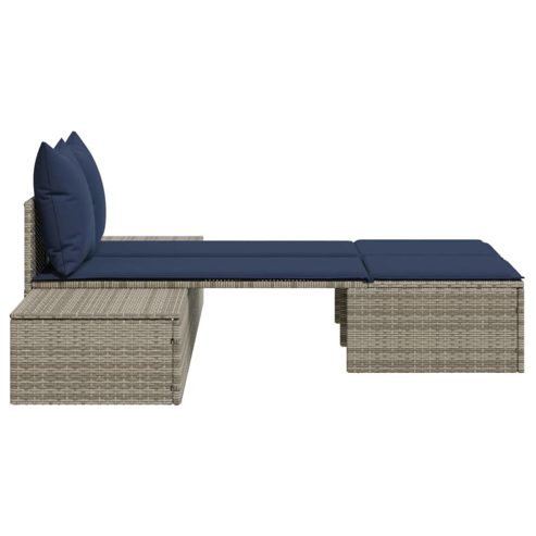 vidaXL Doppel-Sonnenliege mit Kissen Grau Poly Rattan