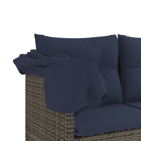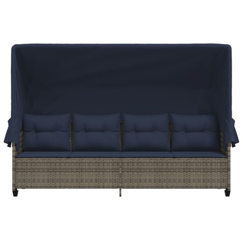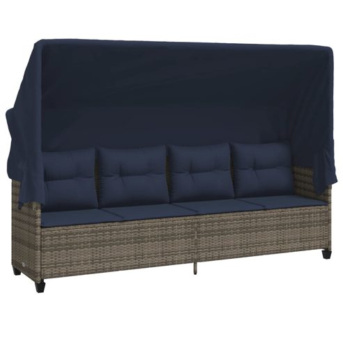 vidaXL Sonnenliege mit Dach und Kissen Grau Poly Rattan