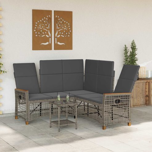 Dieses moderne Gartenliegesofa-Set sorgt für mehr Komfort im Freien. Es hat ein schlichtes und elegantes Design, perfekt zum Entspannen und wirkt dabei stilvoll – ideal für Terrassen oder Gärten. Das praktische Design mit der schlanken Silhouette lädt dazu ein, die Freizeit auf moderne Weise zu genießen und einen schönen Außenbereich zu schaffen, in dem man entspannen oder Gäste empfangen kann. Rattan & Stahl kombiniert: Die Struktur aus Poly-Rattan und pulverbeschichtetem Stahl sorgt für einen modernen Look und hervorragende Langlebigkeit. Diese Kombination bietet eine stabile Basis und hält verschiedenen Wetterbedingungen stand, ideal für den ganzjährigen Einsatz im Außenbereich. Verstellbare Rückenlehnen: Das Sofa wurde für hohen Komfort gestaltet, mit 2 verstellbaren Rückenlehnen, die sich je nach deinen Bedürfnissen anpassen lassen. Ob beim Lesen, Essen oder für ein Nickerchen, die manuelle Verstellung ermöglicht eine flexible Anpassung der Sitzposition. Reißverschluss-Sitz- und Rückenkissen: Die bequemen Sitz- und Rückenkissen sind mit einem Reißverschluss verbunden, was sowohl für den Komfort als auch für die einfache Pflege sorgt. Die Schaumstofffüllung sorgt für die richtige Menge an Weichheit und schafft einen einladenden Raum, in dem man entspannen oder Gäste bewirten kann. Wetterbeständige Eigenschaften: Das Sofadesign ist speziell für den Außenbereich gemacht, mit Eigenschaften, die UV-Strahlen und natürliche Elemente abwehren, sodass es auch gegen die Witterung stark bleibt. Stilvolle Armlehnen: Die flachen Rattanarmlehnen setzen nicht nur Akzente, sie unterstützen auch die klaren Linien des Designs und ergänzen den schlichten Charme, der sich gut in verschiedene Gartenlandschaften einfügt. ** Farbe: Grau und Dunkelgrau ** Material: Poly-Rattan ** Gesamtabmessungen: 164 x 164 x 112 cm (L x B x H) ** Gewicht: 27,6 kg ** Langlebig ** Wetterbeständig ** UV-beständig ** Mit 2 verstellbaren Rückenlehnen neben den Armlehnen ** Sitzkissen und Rückenkissen, die durch einen Reißverschluss verbunden sind ** Mit Stoffkissen ** Armlehnenhöhe vom Sitz aus: 15 cm ** Sitzhöhe vom Boden: 46 cm ** Rahmenmaterial: Pulverbeschichteter Stahl ** Füllmaterial: Schaum ** Max. Gewicht: 110 kg pro Sitz ** Nur für den Außenbereich ** Lieferumfang: ** 1 x Reclining Sofa: 164 x 164 x 88/94/112 cm (L x B x H) ** 6 x Rückenkissen: 47,5 x 65 x 3 cm (B x H x T) ** 4 x Sitzkissen: 47,5 x 53,5 x 3 cm (B x T x T) ** 1 x Eck-Sitzkissen: 53,5 x 53,5 x 3 cm (B x T x T) ** Montage erforderlich: Ja