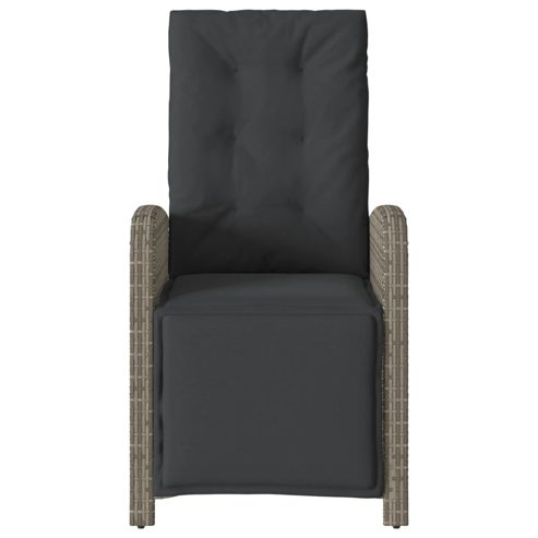 Genieße einen Kaffee oder unterhalte dich mit deiner Familie und deinen Freunden im Garten, Hinterhof oder auf dem Balkon mit diesem bequemen Bistro-Set! Langlebiges Material: PE-Rattan, auch als Poly Rattan bekannt, ist ein robustes, pflegeleichtes synthetisches Material, das die Optik von natürlichem Rattan aufweist. Es kennzeichnet sich durch ein geringes Eigengewicht und lässt sich einfach reinigen. Aufgrund seiner Haltbarkeit und Witterungsbeständigkeit wird es häufig bei der Herstellung von Gartenmöbeln verwendet.Verstellbare Rückenlehne und Fußstütze: Der Gartensessel ist mit einem Griff versehen. So kannst du die Rückenlehne und den Fußteil durch Ziehen des Griffs verstellen und sie danach schnell wieder in ihre ursprüngliche Position bringen. Bequemes Sitzerlebnis: Dieses Gartenmöbel-Set wird samt dick gepolsterten Kissen geliefert, um höchsten Sitzkomfort zu bieten.Abnehmbarer und waschbarer Bezug: Diese Sitzkissen verfügen über abnehmbare Bezüge für einfaches Waschen und Pflegen.Robuster und stabiler Rahmen: Dank des pulverbeschichteten Stahlrahmens ist das Möbelstück robust, stabil und für den täglichen Einsatz im Außenbereich geeignet. Gut zu wissen:Wir empfehlen dir, deine Gartenmöbel mit einer wasserdichten Hülle zu schützen, um lange Zeit eine ansprechende Optik aufzuweisen. ** UV-beständig ** Zusammenbau erforderlich: Ja ** Relaxsessel: ** Farbe: Grau ** Material: PE-Rattan, pulverbeschichteter Stahl ** Abmessungen in Sitzposition: 57 x 61 x 93 cm (B x T x H) ** Abmessungen in Liegeposition: 57 x 113 x 83 cm (B x T x H) ** Sitzgröße: 47 x 50 cm (B x T) ** Sitzhöhe vom Boden: 43,5 cm ** Armlehnenhöhe vom Boden: 64 cm ** Maximale Tragfähigkeit (pro Sitz ): 110 kg ** Tisch: ** Farbe: Grau ** Material: PE-Rattan, pulverbeschichteter Stahl ** Abmessungen: 45 x 50 cm (Durchmesser x H) ** Kissen: ** Farbe: Dunkelgrau ** Bezugsmaterial: Stoff (100% Polyester) ** Füllmaterial des Sitzkissen: Schaumstoff ** Füllmaterial des Rückenkissens: Baumwollfaser ** Abmessungen des Sitzkissens: 48 x 85 x 4 cm (B x T x H) ** Abmessungen des Rückenkissens: 48 x 66,5 x 4 cm (B x T x H) ** ** Lieferung umfasst: ** 2 x Verstellbarer Gartenstuhl ** 1 x Gartentisch ** 2 x Sitzkissen mit abnehmbarem und waschbarem Bezug ** 2 x Rückenkissen