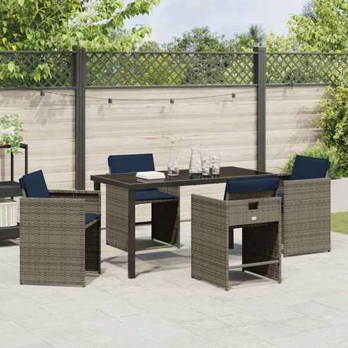 vidaXL Garten Essgruppe mit Kissen 5 pcs Grau Poly Rattan