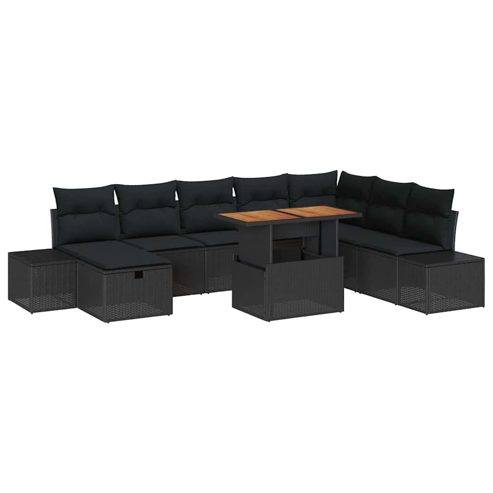 vidaXL Garten-Sofa-Set mit Speicher 9 pcs Schwarz Poly Rattan