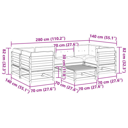 Diese Garten-Sofagarnitur ist die perfekte Ergänzung zu deinem Garten, deiner Terrasse oder deinem Innenhof. Sie bietet einen bequemen und einladenden Platz, um mit Familie und Freunden zu plaudern oder dich einfach nur zu entspannen und das Leben im Freien zu genießen. Robustes und langlebiges Material: Douglasienholz ist für seine Festigkeit und Haltbarkeit bekannt. Seine satte rotbraune Farbe und seine einzigartige Maserung verleihen ihm eine warme und natürliche Optik. Dank seiner ausgezeichneten Stabilität und Witterungsbeständigkeit eignet es sich ideal für die Herstellung von Innen- und Außenmöbeln.Bequemes Sitzerlebnis: Dieser Gartensessel mit dick gepolsterten Kissen bietet ein angenehmes Sitzgefühl.Gute Belüftung und Verhinderung von Ansammlungen: Das Latten-Design sorgt für eine optimale Luftzirkulation und verhindert effektiv, dass sich Wasser ansammelt, wodurch die Sitzfläche stets bequem trocken bleibt.Modulares Design: Dank des modularen Designs lassen sich die Gartenmöbel völlig flexibel und einfach umstellen, um deinen Außenbereich ganz individuell zu gestalten. Gut zu wissen:Wir empfehlen dir, deine Gartenmöbel mit einer wasserdichten Hülle zu schützen, um lange Zeit eine ansprechende Optik aufzuweisen. ** Material: Massives Douglasienholz (unbehandelt) ** Tragfähigkeit (pro Sitz ): 110 kg ** Zusammenbau erforderlich: Ja ** Ecksofa: ** Maße: 70 x 70 x 67 cm (B x T x H) ** Sitzgröße: 63,5 x 63,5 cm (B x T) ** Höhe der Rückenlehne: 37 cm ** Sitzhöhe vom Boden: 30 cm ** Mittelsofa: ** Maße: 70 x 70 x 67 cm (B x T x H) ** Sitzgröße: 70 x 63,5 cm (B x T) ** Höhe der Rückenlehne: 37 cm ** Sitzhöhe vom Boden: 30 cm ** Hocker-Abmessungen: 70 x 70 x 30 cm (B x T x H) ** Kissen: ** Farbe: Grau ** Material des Bezugs: Oxford-Gewebe ** Füllmaterial: PP-Baumwolle ** Abmessungen des Sitzkissens: 70 x 70 x 12 cm (L x B x H) ** Abmessungen des Rückenkissens: 70 x 40 x 12 cm (L x B x H) ** Lieferung umfasst: ** 4 x Ecksofa ** 2 x Mittelsofa ** 1 x Fußhocker ** 10 x Rückenkissen ** 6 x Sitzkissen Maximal 110 kg pro Sitz. Achte auf die Gefahr von offenem Feuer und anderen starken Hitzequellen in der Nähe des Produkts.