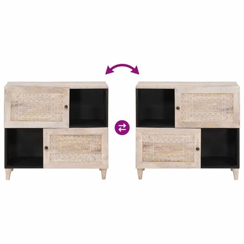 Dieses schicke Mangoholz-Sideboard ist ein praktisches Stück, das jedem Wohnzimmer modernen Flair verleiht. Sein zeitgemäßes Design mit klaren Linien und minimaler Dekoration passt perfekt in verschiedene Wohnstile. Es ist genau das Richtige für alle, die eine elegante Aufbewahrungslösung suchen, die viel Platz bietet und gleichzeitig eine warme, natürliche Atmosphäre schafft. Materialien: Das Sideboard ist aus hochwertigem Massivholz Mango, bekannt für seine Robustheit und die schönen Holzmaserungen. Es ist eine langlebige und ansprechende Wahl für alle, die natürliche Eleganz und stabile Möbel mögen. Inhalte: Mit flächenbündigen Türen für eine glatte Oberfläche und einfachen Knöpfen für den Zugriff, hat das Sideboard stabile Beine, die gute Unterstützung bieten. Diese Teile zusammen schaffen einen beeindruckenden modernen Look, der auch praktisch ist. Funktionen / Nutzung / Design: Das Sideboard hilft dir, Ordnung zu halten mit seinen vielen Fächern, die für einen aufgeräumten Raum sorgen. Sein einfaches Design ist sowohl schick als auch funktional und zeigt moderne Eleganz. Pflege & Wartung: Es ist einfach, es hübsch zu halten. Verwende einfach ein weiches, trockenes Tuch zur Reinigung und meide aggressive Reiniger, die die Oberfläche schädigen könnten. Diese einfache Pflege hilft dem Sideboard, sein schönes Aussehen über die Zeit zu bewahren. ** Farbe: Weiß ** Material: Massives mango holz und hochleistungswerkstoff ** Gesamtabmessungen: 33.5 x 80 x 75 cm (B x L x H) ** Mit 2 türen ** Versammlung erforderlich: Ja ** Lieferung: ** 1 x Sideboard