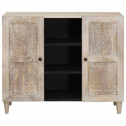 Dieses schicke Holz-Sideboard liegt genau im Bilde zwischen Stil und Funktionalität. Es ist ein echtes Highlight in jedem modernen Zuhause. Vor allem aus solidem Mangoholz gemacht, ist es super robust und perfekt, um deine Wohnzimmer-Utensilien unterzubringen. Mit seinem minimalistischen Look, klaren Linien und bündigen Türen verbreitet es ein modernes Gefühl, das zu jeder Deko passt. Die großen Fächer plus stabiler Rahmen garantieren nicht nur Langlebigkeit, sondern geben deinem Raum auch einen schnieken Touch. Egal, ob du Geschirr oder Deko verstauen willst, es bietet dir all das und sieht dabei auch noch gut aus! Materialien: Hergestellt aus solidem Mangoholz und Holzwerkstoff für eine robuste Struktur, die den täglichen Gebrauch ohne Probleme übersteht. Die warme Textur des Mangoholzes bringt echten Charakter ins Spiel und passt perfekt zum eleganten Finish des Holzwerkstoffs. Enthaltene Komponenten: Mit praktischen Knöpfen und bündigen Türen für einfachen Zugriff. Das Pfostenbein-Design bietet starken Halt und sieht dabei klassisch und dezent aus. Funktionen / Nutzung / Design: Dieses Sideboard bietet jede Menge Stauraum mit seinen großzügigen Fächern, was es leicht macht, alles ordentlich zu halten. Die rechteckige Form ist perfekt, um an Wänden oder in Ecken zu stehen, und macht es zu einem echten Blickfang, ohne zu aufdringlich zu sein. Empfohlene Anwendungen: Ideal für Wohnzimmer, dieses funktionale Design eignet sich super zur Aufbewahrung von Geschirr oder Deko und fügt sich nahtlos in moderne und minimalistische Interieurs ein. Es verwandelt leere Räume in schicke, stylische Bereiche. Pflege & Wartung: Du brauchst zwei Personen und einen Schraubendreher für die Montage. Danach hältst du es einfach in Schuss, indem du es mit einem trockenen Tuch abwischst. Vermeide aggressive Chemikalien, damit es länger hält und dieses schöne Stück Teil deiner Wohnkultur bleibt. ** Farbe: Weiß ** Material: Massives mango holz und hochleistungswerkstoff ** Gesamtabmessungen: 33.5 x 90 x 75 cm (B x L x H) ** Mit 2 türen ** Versammlung erforderlich: Ja ** Lieferung: ** 1 x Sideboard