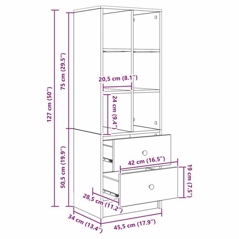 vidaXL Hochboard mit Schubladen Weiß 45,5 x 34 x 127 cm Holzwerkstoff
