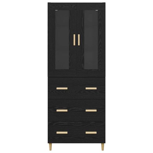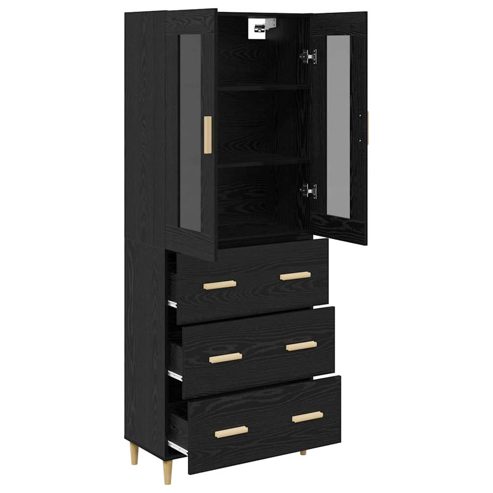 Dieser moderne Hochschrank ist die perfekte Lösung für stylische Aufbewahrung in jedem Zuhause. Mit seiner schlanken Form bringt er Funktionalität und Stil zusammen und hebt jedes Wohnzimmer mit klaren Linien und minimalistischem Design hervor. Sein auffälliges Aussehen macht ihn zum idealen Mittelpunkt, der sich nahtlos in modernen und Übergangsdekor einfügt. Reichlich Stauraum: Dieser Hochschrank hat viel Platz, um alles ordentlich und organisiert zu halten. Er enthält mehrere Fächer, traditionelle Schubladen mit Griffen und integrierte Regale, die praktischen Platz für deine Essentials bieten. So kannst du alles von Büchern bis hin zu Deko bequem unterbringen. Haltbare Materialien: Hergestellt aus starkem Holzwerkstoff, bietet dieser Hochschrank Langlebigkeit. Das Material ist fleckenresistent, sodass dein Möbelstück auch nach intensivem Gebrauch frisch bleibt. Ideal für lebhafte Haushalte, ist er robust genug für den Alltag. Wandmontiertes Design: Der Hochschrank kann sicher wandmontiert werden, was ihn platzsparend macht. So erhält jeder Raum einen schicken Look. Er ist perfekt für kleine Wohnbereiche, die Organisation brauchen, ohne auf Stil zu verzichten. Eleganter Türmechanismus: Die Türen mit Scharnieren aus Holzwerkstoff öffnen sich leicht und bieten Zugang zu allen Fächern. Eine polierte Oberfläche verleiht ihm einen tollen Eindruck mit ihrem glänzenden Aussehen, das zu jedem modernen Interieur passt. Pflege & Wartung: Die Pflege des Hochschranks ist einfach. Wische regelmäßig mit einem weichen, trockenen Tuch ab und benutze keine scharfen Chemikalien. So bleibt das Stück auch nach längerer Zeit lebendig und ansprechend und bewahrt seinen modernen Charme. ** Farbe: Schwarz Eichen-Optik ** Material: Holzwerkstoff ** Gesamtabmessungen: 69,5 x 34 x 90 cm (L x B x H) ** With drawer ** mit 3 Türen ** Montage erforderlich: Ja ** Lieferumfang: ** 1 x Sideboard: 69 ** 5 x 34 x 90 cm (LxBxH) ** 1 x Oberteil für Highboard: 69 ** 5 x 34 x 90 cm (LxBxH)