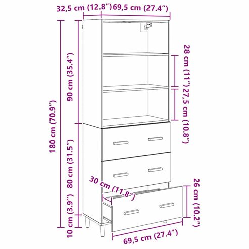 Dieses schicke moderne Highboard steht für zeitgenössisches Design, das durch Einfachheit und Funktionalität überzeugt. Es wurde mit Blick auf Eleganz und Nützlichkeit entworfen und bietet viel Stauraum, während es die Ästhetik deiner Wohn- oder Essbereiche aufwertet. Die klaren Linien und der minimalistische Stil schaffen eine elegante Atmosphäre und machen es zu einem vielseitigen Teil für jedes moderne Zuhause. Es fügt sich nahtlos in deinen Raum ein und verbindet Form und Funktion, bietet sowohl praktische Vorteile als auch einen Hauch von schicker Eleganz. Robuster Holzwerkstoff: Das moderne Highboard besteht aus hochwertigem Holzwerkstoff, der langlebig und robust für den Alltagsgebrauch ist. Es hat einen zeitgemäßen Charme und sorgt für Langlebigkeit und eine ansprechende Optik. Mit professioneller Verarbeitung bringt es sowohl Langlebigkeit als auch Stil in jedes moderne oder minimalistische Zuhause. Effizienter Stauraum: Das Highboard hat viel Platz auf seinen Regalen für alles, was du aufbewahren möchtest. Jedes Regal bietet Platz für verschiedenste Dinge, von Büchern bis zu Deko, und sorgt für Ordnung. Diese Funktion hilft dir, dein Zuhause aufzuräumen und macht die tägliche Organisation leichter, was zu einem sauberen und ordentlichen Raum führt. Ob für persönliche Gegenstände oder Dekoration – die Effizienz sorgt für eine coole Aufbewahrungslösung. Elegantes Wanddesign: Das wandmontierte Design spart Platz und sieht dazu noch elegant aus. Es sorgt dafür, dass der Boden frei bleibt und das moderne Look zur Geltung kommt. Die Reinigung ist einfach, da es nicht in Bereichen steht, die oft staubig werden, und somit wenig Wartung braucht. Vielseitige Anwendung: Das Highboard eignet sich super für Wohn- oder Essbereiche und passt perfekt in verschiedene Raumgestaltungen. Seine rechteckige Form ergänzt sowohl schmale als auch breite Wände und erlaubt flexible Platzierung. Es ist für Innenräume konzipiert und harmoniert mit unterschiedlichen Einrichtungsstilen und vermittelt immer einen frischen, modernen Look. Verantwortungsvolle Pflege: Damit alles gut funktioniert, solltest du das Highboard an der Wand befestigen, um ein Umkippen zu vermeiden. Das sorgt nicht nur für Sicherheit, sondern stabilisiert auch das Möbelstück und hilft, die Struktur über die Zeit zu erhalten. Regelmäßiges Abstauben mit einem trockenen Tuch hält die Oberfläche sauber und behält das makellose Aussehen. Diese einfachen Pflegeschritte verlängern die Lebensdauer des Highboards und sorgen dafür, dass du lange Freude dran hast. ** Farbe: Schwarz Eichen-Optik ** Material: Holzwerkstoff ** Gesamtabmessungen: 69,5 x 34 x 180 cm (L x B x H) ** With drawer ** Montage erforderlich: Ja