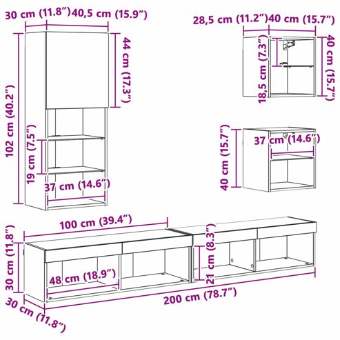 TV Wand Einheiten mit LED 5 Stück Artisan-Eiche Holzwerkstoff