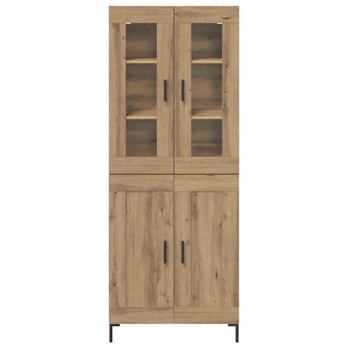 Dieser moderne Hochschrank ist der perfekte Begleiter für dein Wohnzimmer oder jeden Raum, der praktische und platzsparende Lösungen braucht. Seine klaren, minimalistischen Linien ergänzen den zeitgemäßen Stil und das wandmontierte Design ist optimal, um Platz auf dem Boden zu sparen. Egal, ob du einen kleinen Raum hast oder ein großes, offenes Konzept - dieser Hochschrank passt überall hin. Die Kombination aus hochwertigem Holz und Glas sorgt für ein leichtes, stabiles Möbelstück, das sowohl funktional als auch hübsch ist. Er bietet viel Platz für deine Sachen, Deko und Essentials und verwandelt jeden Raum in eine aufgeräumte und schicke Umgebung. Moderner Stil: Der Hochschrank hat eine schlanke rechteckige Form und vermittelt modernste Einfachheit und Funktionalität. Die matte und strukturierte Oberfläche verstärkt den zeitgenössischen Look und fügt sich bestens in minimalistische Umgebungen ein oder setzt in eklektischen Räumen subtile Akzente. Wandmontiertes Design: Mit seiner wandmontierten Installation maximiert der Hochschrank deinen Raum, ohne den Boden zu belasten. Das ist ideal für kleinere Wohnungen, wo Platznot herrscht, und sorgt gleichzeitig für einen aufgeräumten Look. Hochwertige Materialien: Hergestellt aus solide verarbeitetem Holz und mit stilvollen Glastüren kombiniert, bietet dieses Möbelstück sowohl Langlebigkeit als auch Eleganz. Das Holz sorgt für die nötige Stabilität, während die Glastüren einen tollen Blick auf die Dinge in deinem Schranks bieten. Anpassbare Aufbewahrung: Dieser Hochschrank ist so konzipiert, dass er verschiedene Aufbewahrungsbedürfnisse erfüllt. Egal, ob du Bücher sortieren oder Alltagsgegenstände verstauen willst, die Fächer bieten Flexibilität, damit alles seinen Platz hat. Praktische Montage: Der Hochschrank ist einfach zu montieren und kommt mit klaren Anweisungen, die zwei Personen und einen Schraubendreher benötigen. Der schnelle Aufbau sorgt dafür, dass du schnell von seiner Funktionalität profitieren kannst. ** Farbe: Artisan-Eiche ** Material: Holzwerkstoff ** Gesamtabmessungen: 69,5 x 34 x 180 cm (L x B x H) ** mit 4 Türen ** Montage erforderlich: Ja ** Lieferumfang: ** 2 x Sideboard